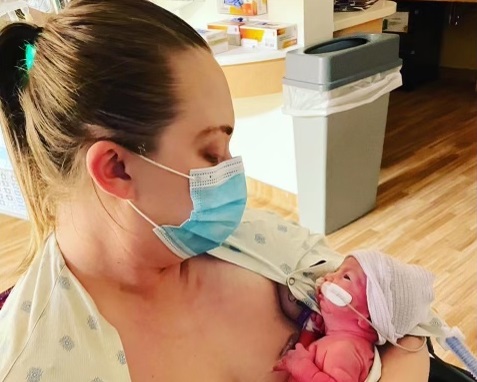 When Emily finally got to see River in the NICU, he was receiving oxygen and breathing on his own.