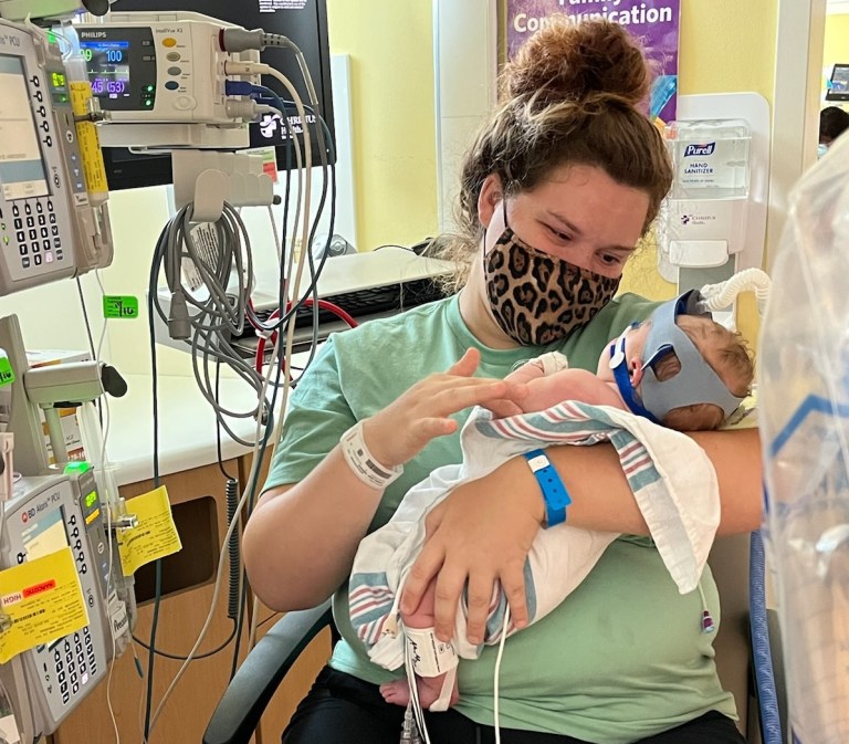 “I had the greatest team of doctors and nurses,” said Rebekah. “They were amazing since the first day my daughter was transported to the NICU. If I had a question or concern, it was never hard to reach them. As a first-time mother, I had so many questions to ask them. I credit the NICU care team, including Dr. Pierce and Dr. Motta who were Pasleigh’s primary physicians, for saving my daughter’s life. Despite everything we’ve been through, I am grateful my baby is alive and with us.”